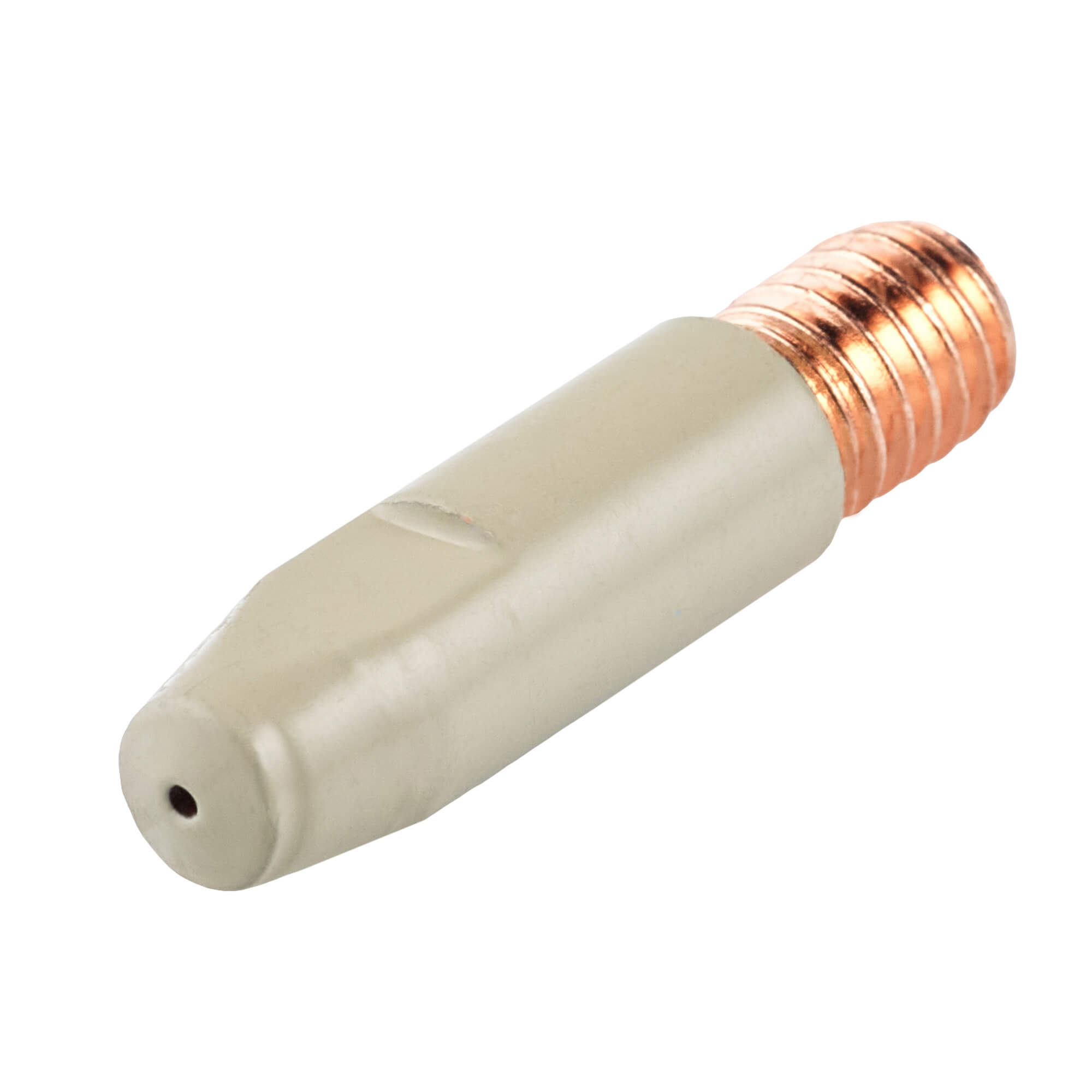 Сварочный наконечник M6 с керамическим покрытием для полуавтоматических горелок всех серий MIG MP 24, 25, 26, 36 и 500. Используется для проволоки диаметром 0,8 мм.Наконечник изготовлен из меди (E-CU), сверху нанесён керамический слой, который работает как электрический и термический изолятор поверхности.Керамическое покрытие наносится специальным технологическим процессом, образуется гомогенный ровный слой, рассчитанный на промышленную эксплуатацию такого газораспределительного сопла. Керамический слой состоит из броннитрида (бор нитрид, BN).Отличительная особенность стандартного наконечника CRM6810-08 – это керамическое покрытие:Керамическое покрытие создаёт термобарьер, так как керамика выдерживает очень высокие температуры, не расплавляется и не деформируется.Покрытие препятствует прилипанию сварочных брызг за счёт очень гладкой поверхности. Брызги либо отскакивают, либо слабо держатся и легко счищаются.Из-за отсутствия налипших брызг металла формируется более стабильный газовый поток и дуга. Увеличивается продолжительность работ без остановки и последующей очистки комплектующих.Керамический слой заметно увеличивает ресурс наконечника. Использование комплектующих с керамическим покрытием снижает затраты на обслуживание и расходные материалы.Область применения наконечников с керамическим покрытием:Узкощелевое сваривание труб, толстых стенок. Орбитальная сварка, где сопло или наконечник может задеть стенку свариваемого изделия. В таком случае керамическое покрытие выступает в роли диэлектрика, защищает от коротких замыканий, снижает риск «поджигания» дуги по боковой стенке и медных включений в металл шва.Сварка порошковой проволокой, где нужно увеличить токи и скорость без потери качества корня.Автоматизированные линии и роботизация, где критичны длительные остановки рабочего процесса и присутствует минимальное обслуживание сварочных горелок.