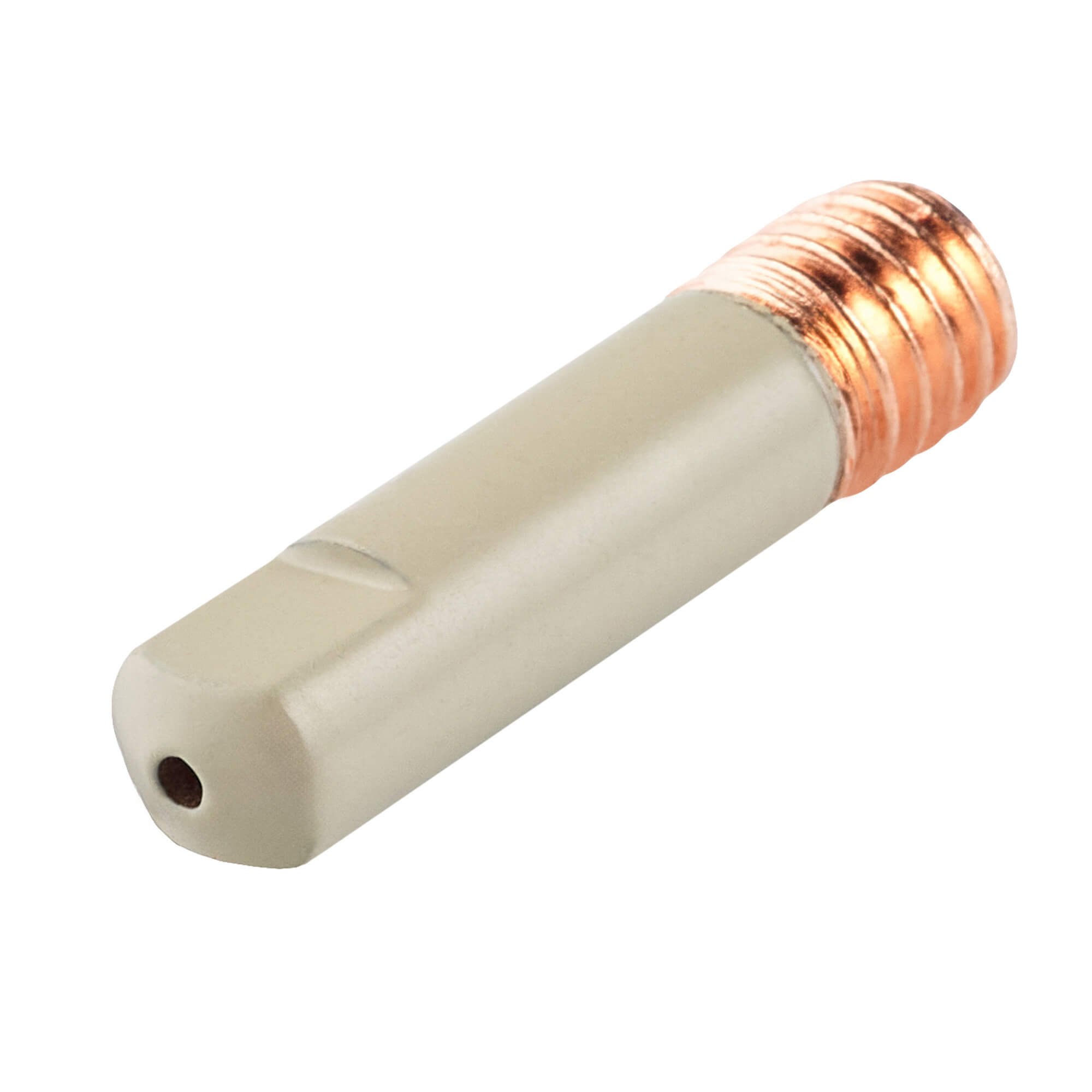 Прямой сварочный наконечник M6 с керамическим покрытием для полуавтоматических горелок MIG MP 15 и МАСТЕР MIG MP 15. Используется для проволоки диаметром 1,0 мм.Наконечник изготовлен из меди (E-CU), сверху нанесён керамический слой, который работает как электрический и термический изолятор поверхности.Керамическое покрытие наносится специальным технологическим процессом, образуется гомогенный ровный слой, рассчитанный на промышленную эксплуатацию такого газораспределительного сопла. Керамический слой состоит из броннитрида (бор нитрид, BN).Отличительная особенность прямого наконечника CRM6510-10 – это керамическое покрытие:Керамическое покрытие создаёт термобарьер, так как керамика выдерживает очень высокие температуры, не расплавляется и не деформируется.Покрытие препятствует прилипанию сварочных брызг за счёт очень гладкой поверхности. Брызги либо отскакивают, либо слабо держатся и легко счищаются.Из-за отсутствия налипших брызг металла формируется более стабильный газовый поток и дуга. Увеличивается продолжительность работ без остановки и последующей очистки комплектующих.Керамический слой заметно увеличивает ресурс наконечника. Использование комплектующих с керамическим покрытием снижает затраты на обслуживание и расходные материалы.Область применения наконечников с керамическим покрытием:Узкощелевое сваривание труб, толстых стенок. Орбитальная сварка, где сопло или наконечник может задеть стенку свариваемого изделия. В таком случае керамическое покрытие выступает в роли диэлектрика, защищает от коротких замыканий, снижает риск «поджигания» дуги по боковой стенке и медных включений в металл шва.Сварка порошковой проволокой, где нужно увеличить токи и скорость без потери качества корня.Автоматизированные линии и роботизация, где критичны длительные остановки рабочего процесса и присутствует минимальное обслуживание сварочных горелок.
